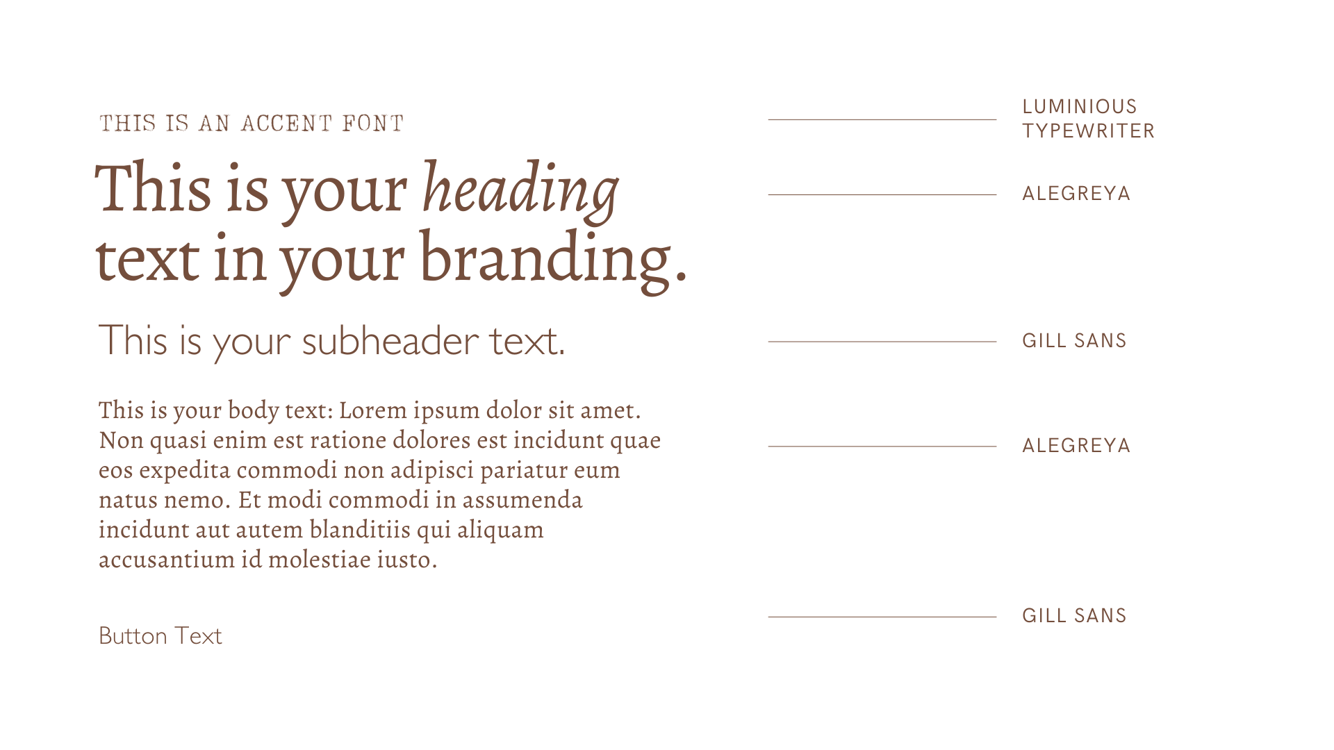 Are you going for a timeless serif, a modern sans, or does your brand need the depth of both? You don't need to know what those mean, you just need to know how your brand should feel. That's my job.
